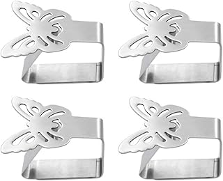 TOPBATHY Lot de 4 Pinces de Nappe en Acier Inoxydable pour Nappe, Nappe, Pinces à Nappe (Papillon), Acier Anti-Rouille, Argent 1, 6,5 * 5 cm