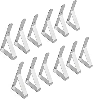 MINGZE 12 pcs en Acier Inoxydable Nappe Clips, Pinces à Nappe, Pique-Nique Nappe Table Pinces Porte-Nappe, Argent