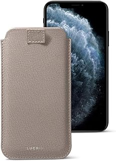 Lucrin - Étui Tirette Compatible avec iPhone 11 Pro/iPhone XS/iPhone X et Supporte Le Rechargement sans Fil - Taupe Clair - Cuir Véritable