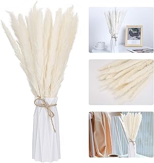 Aitsite 30pcs Fleurs Séchees Naturelles, Fleur Artificiel Pampa Fleur pour Décoration Mariage, Décoration Table, Décoration Balcon, Plante Interieur Naturel, Blanc avec Vase