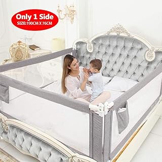 ZEHNHASE Barrière de Lit Enfants Bébés Protection Bord de Lit pour Sécurité des Enfants Bébés Portable Bedrail Safetyguard (Gris, 190CM)