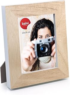 Cadre Photo 13x18 Bois MDF, Photo Frame avec Décoration de bordure Blanc pour Poster 13x18 cm, Façade en verre, Cadre d'affiche Photo Certifié, Horizontale ou Verticale, Cadeau Noël , Effet Chêne
