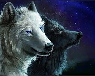 LilicatDIY Peinture De Diamant- Kit De Broderie Diamant à Réaliser Soi-Même pour Décoration,Motif Loup sur Fond Nocturne avec Strass 5D,Diamant Broderie Chien Animal Peinture Croix Craft Home Decor