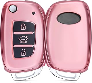 kwmobile Accessoire Clef de Voiture Compatible avec Hyundai clé 3-Touches - Coque de Protection en Silicone Or rosé Haute Brillance