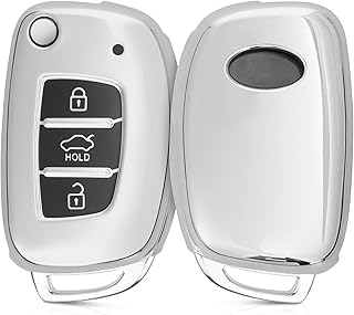 kwmobile Accessoire Clef de Voiture Compatible avec Hyundai clé 3-Touches - Coque de Protection en Silicone Argent Haute Brillance