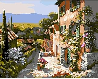 CaptainCrafts Peinture à l'huile par numéros - Dimensions : 16 x 20 cm - Pour adultes débutants et enfants - Toile en lin - Pavillon sous la montagne (sans cadre)