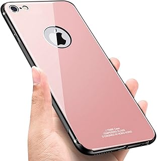Coque pour iPhone 6S, XINYIYI Luxe Verre Trempé Arrière et TPU Silicone Gel Bumper Antichoc Housse Étui de Protection pour Apple iPhone 6/ iPhone 6S (4,7 pouces) - Rose