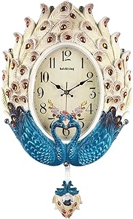 Lafocuse Horloge Murale à Pendule Grande Beige et Turquoise Paon Pendule Murale Quartz Élégant Silencieuse Luxe Décoration pour Salon Chambre Bureau 55.5 * 36cm