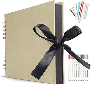 Albums Photos, Album Photo Scrapbooking, 80 Pages Traditionnel DIY Scrapbook, Double Spirale Reliure Album Fait à la Main avec 12 Stylos en Métal, Saint Valentin, Anniversaire, Cadeaux de Mariage(noir