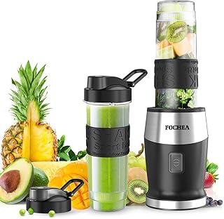 Fochea Mixeur à smoothie 500 W Mini mixeur à smoothie multifonction avec 2 bouteilles de sport Tritan sans BPA 570 ml pour shakes et smoothies