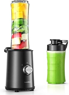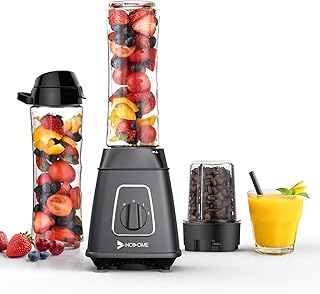 Hosome Blender Smoothie, Mixeur Milkshake Mélangeur Vitesses Réglables, 6 Lames en Inox, Base Antidérapante, 3 Bouteilles Portables Sans BPA, pour Fruit Légume Smoothie Jus Milkshake Grain de Café